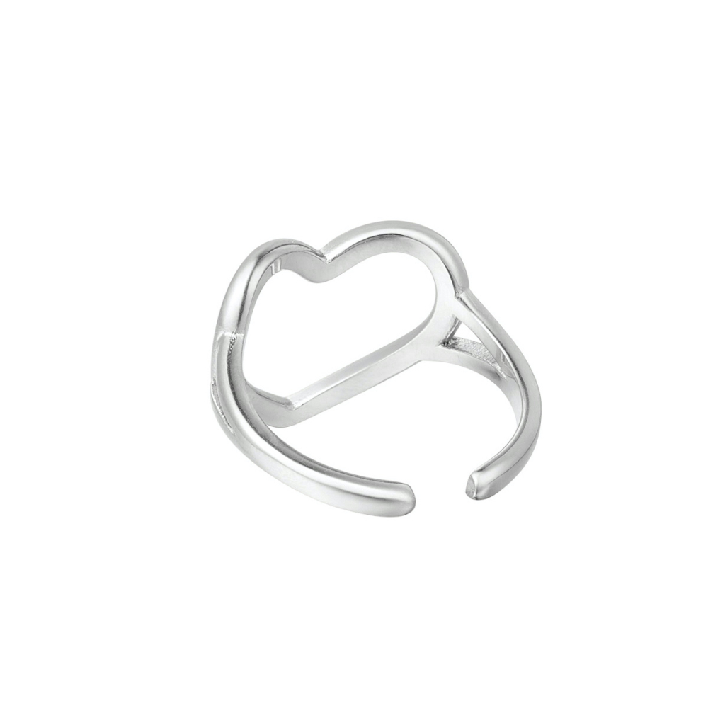 Verstelbare ring hart - zilver Stainless Steel One size