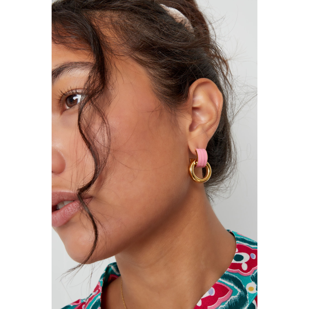 Oorbel dubbele laag roze - goud