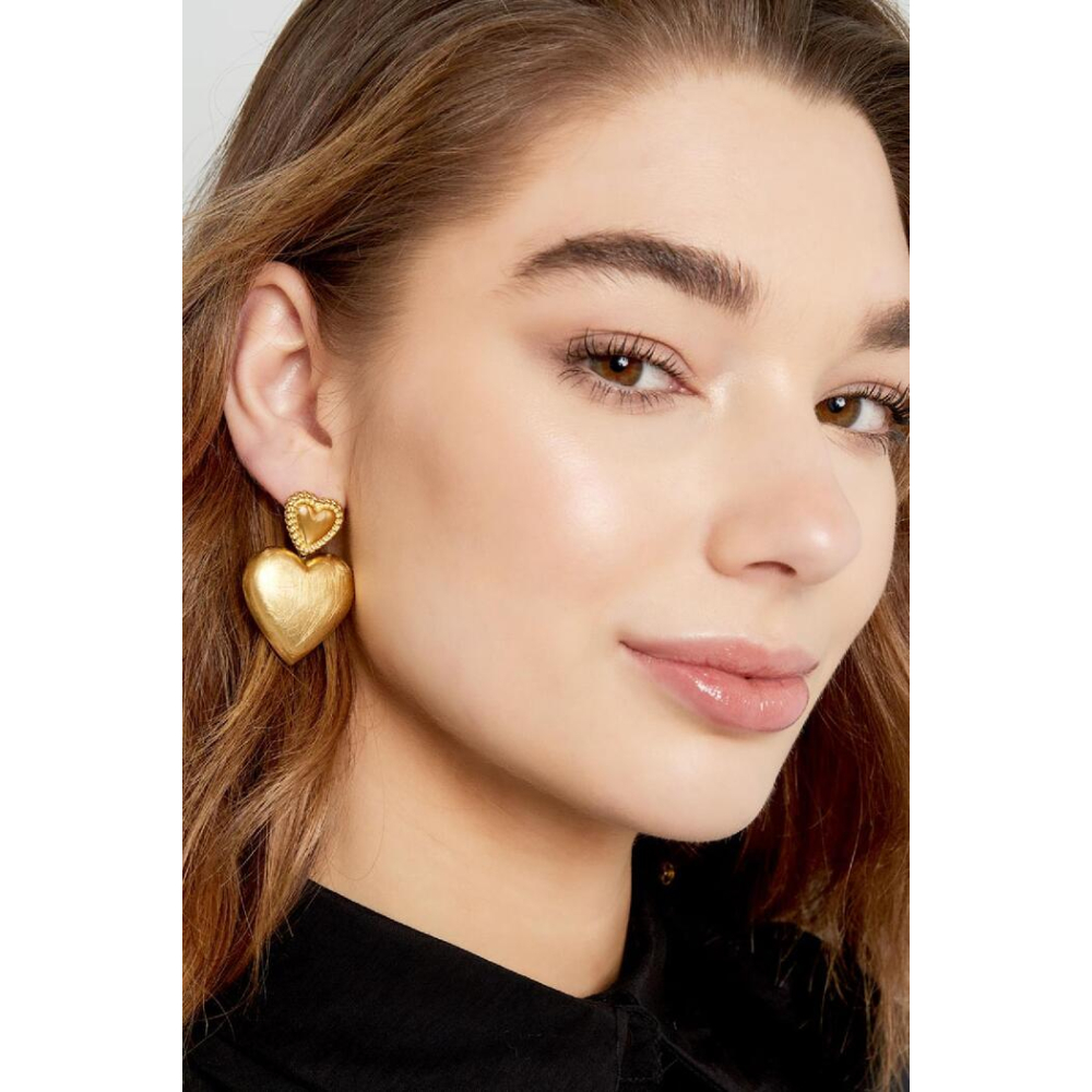 Trend alert! Ben jij net als ons helemaal verliefd op alle hartjes sieraden? Dan zijn deze gouden oorbellen echt iets voor jou! De oorbellen zijn voorzien van twee hartjes waardoor de oorbellen een speels effect hebben! Daarnaast kun je deze oorbellen perfect dragen tijdens een tof festival. Erg leuk om deze oorbellen te combineren met meerdere hartjes sieraden. De oorbellen zijn gemaakt van Stainless steel en shop je in de kleuren goud en zilver. Oorbellen hartjes hebben een lengte van 4,5 cm.