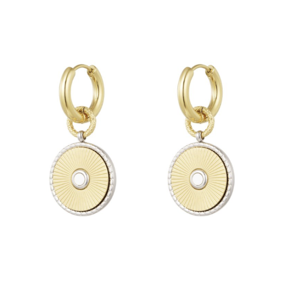Hoe mega leuk zijn deze gouden oorbellen met rondje. De oorbellen zijn voorzien van een schattig rondje met zilveren details. Te leuk om deze oorbellen te combineren met meerdere sieraden met zilveren en gouden details. De oorbellen hebben een afmeting van 3,8 cm en zijn gemaakt van stainless steel in combinatie met zeeschelp. Deze oorbellen zijn een echte cadeautip.