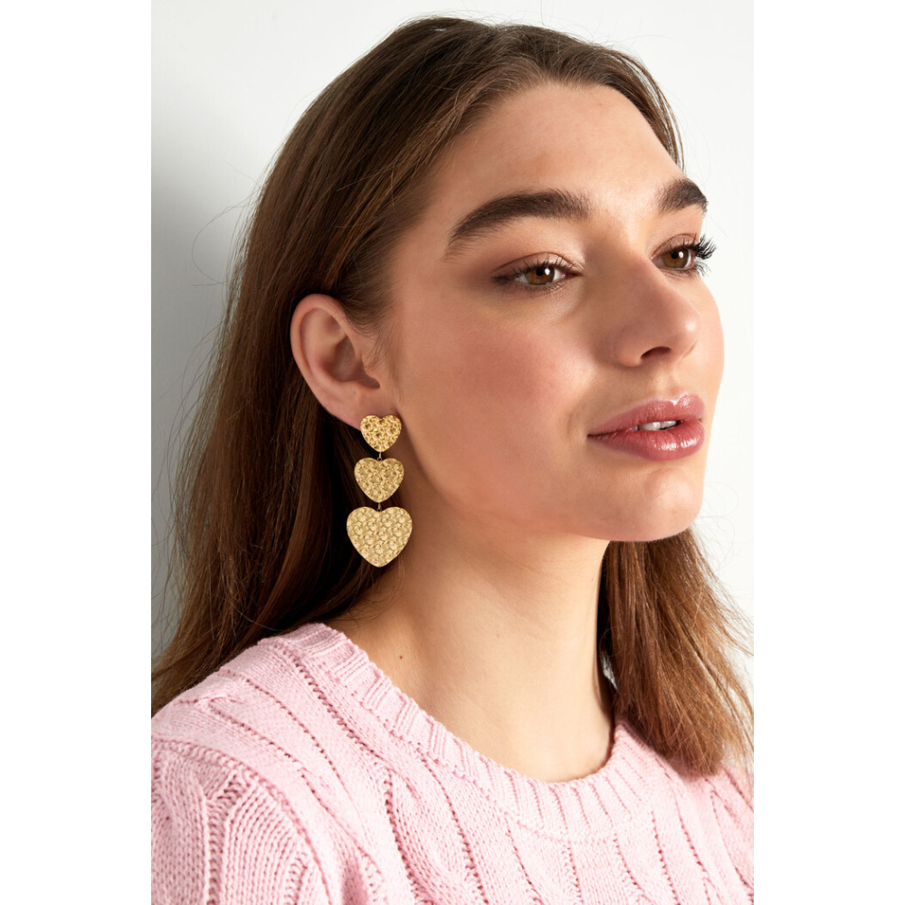 Triple heart oorbel - goud